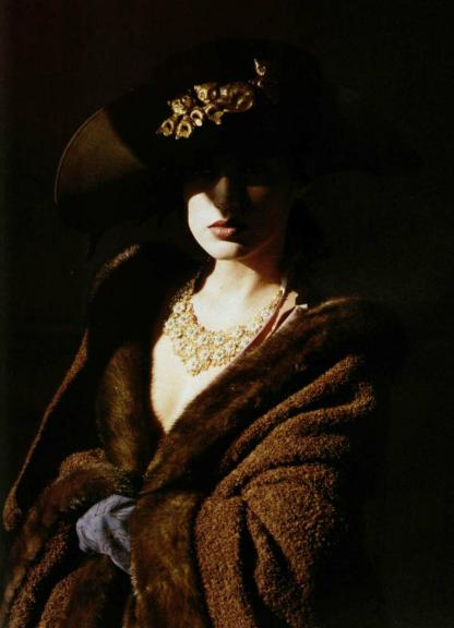 Manteau et chapeau de Lacroix et collier de Buccellati.