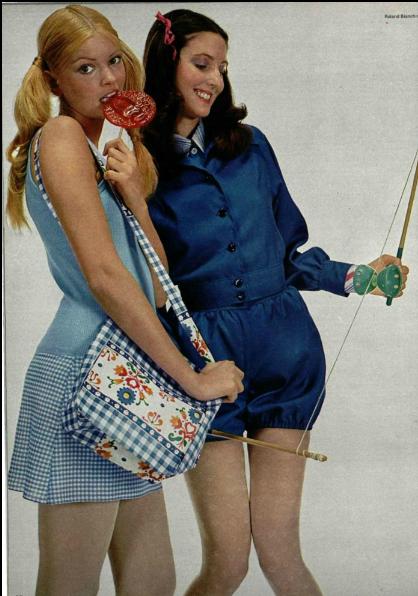 Robe de Get Gaston Jaunet à jupe en vichy et sac de José Cotel avec motif vichy, 1971.